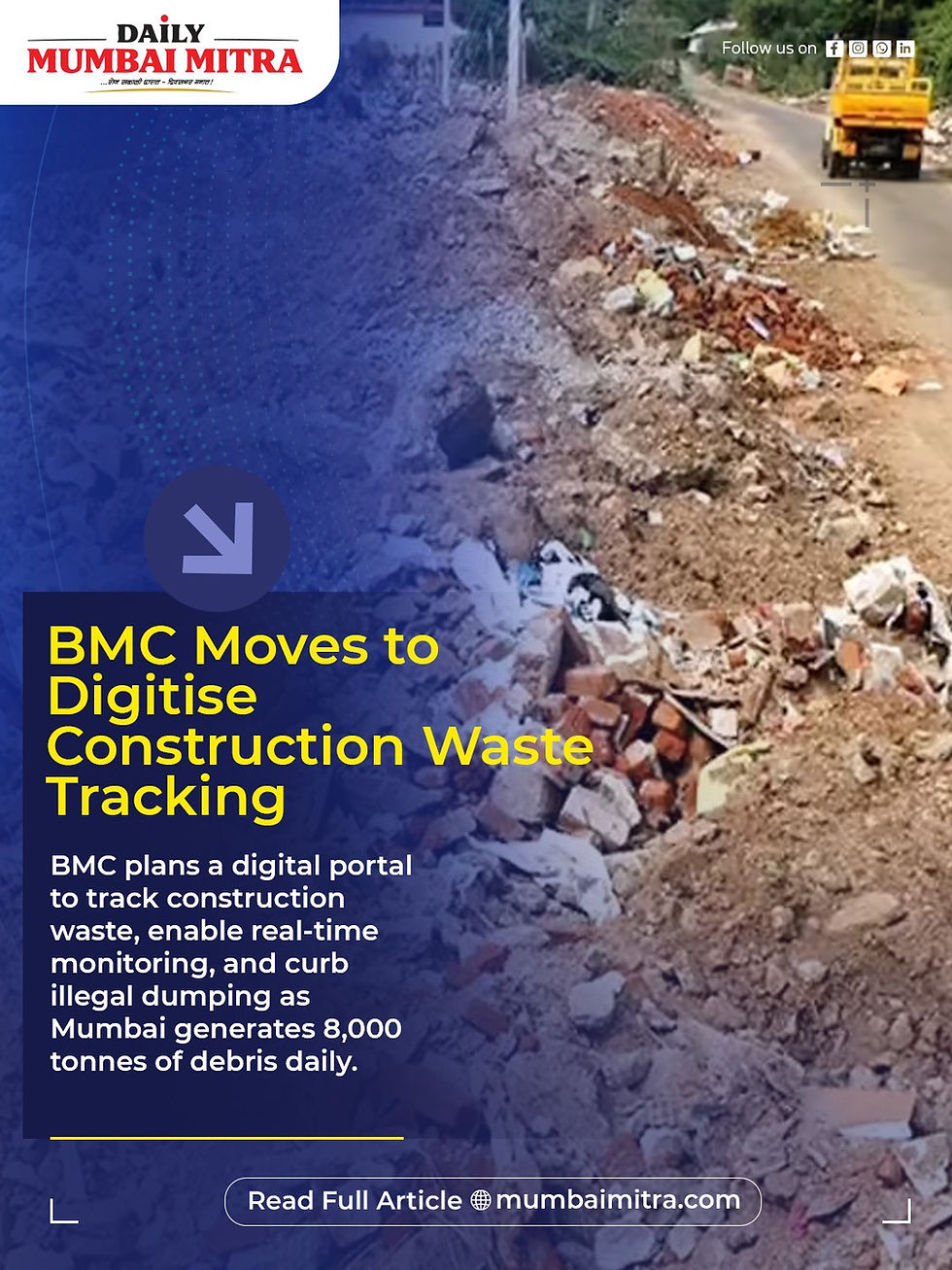 BMC Moves to Digitise Construction Waste TrackingBMC plans a digital portal to track construction waste, enable real-time monitoring, and curb illegal dumping as Mumbai generates 8,000 tonnes of debris daily.