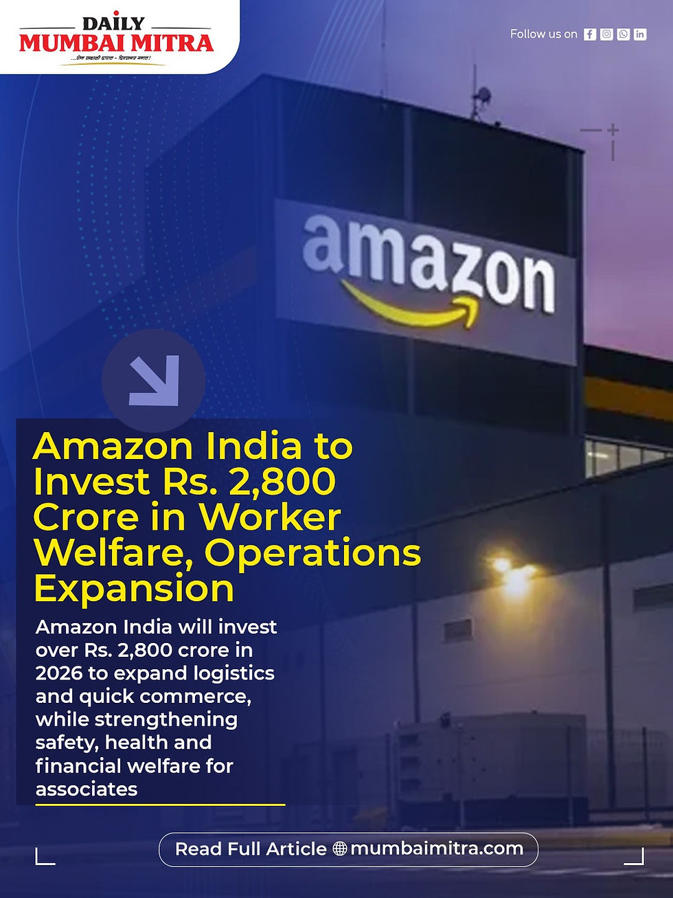Amazon India to Invest Rs. 2,800 Crore in Worker Welfare, Operations ExpansionAmazon India will invest over Rs. 2,800 crore in 2026 to expand logistics and quick commerce, while strengthening safety, health and financial welfare for associates.